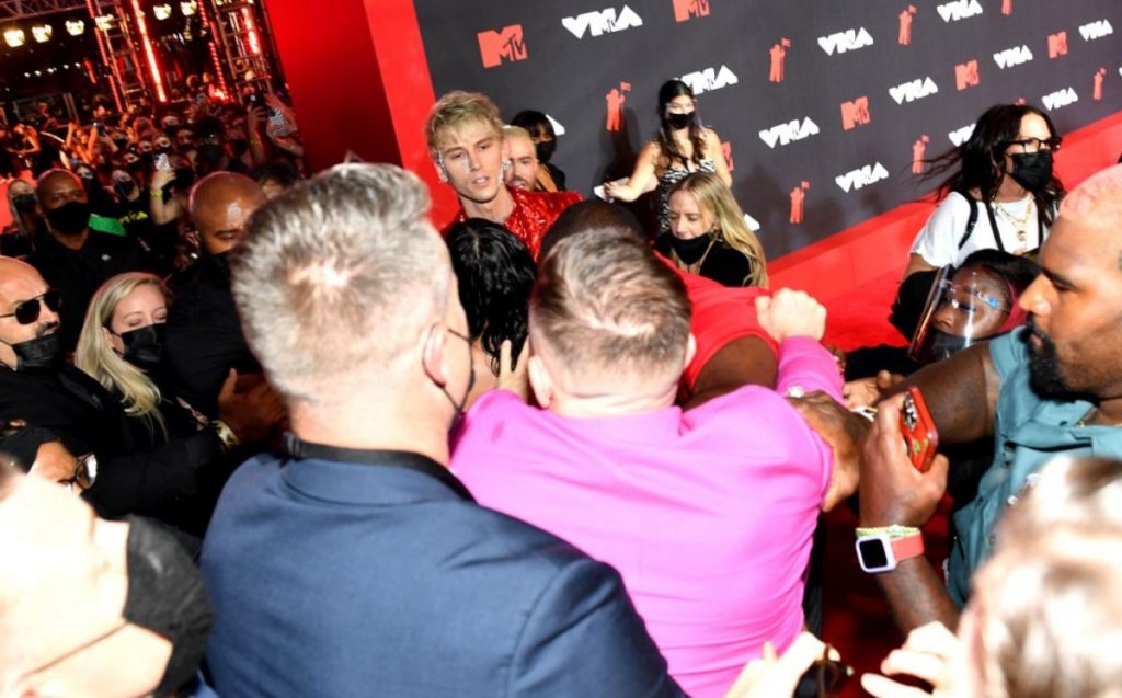 Esto porque el luchador de la UFC Conor McGregor tuvo un fuerte encontronazo con el rapero Machine Gun Kelly en la alfombra roja del evento. Las dos celebridades se fueron a los golpes y tuvieron que intervenir sus guardaespaldas y el personal de seguridad.