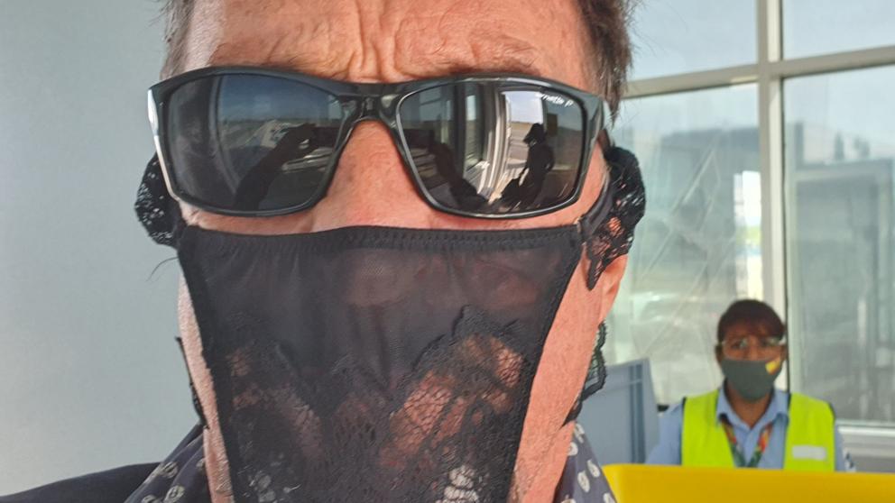I put on my thong mask.