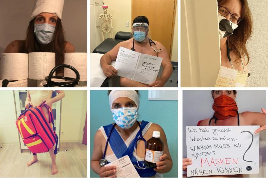 Una llamativa tendencia ha llamado la atención en Alemania esta última semana. Y es que a través de redes sociales y el sitio web “Blanke Bedenken” (dudas al desnudo), médicos alemanes se han mostrado desnudos y tapados solo por algunos materiales a través de fotografías. ¿La razón? Protestar por la falta de insumos médicos en medio de la pandemia del coronavirus.