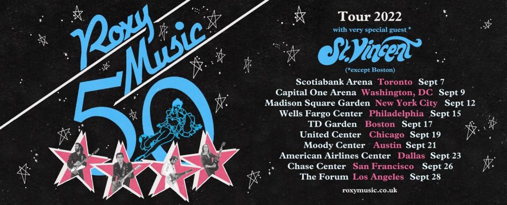 De esta manera, el grupo encabezado por Bryan Ferry y Phil Manzanera vuelve a los escenarios tras más de una década de ausencia, adelantando además que St. Vincent será quien abrirá los conciertos de esta nueva gira. A continuación te dejamos el afiche del primer tramo del tour.